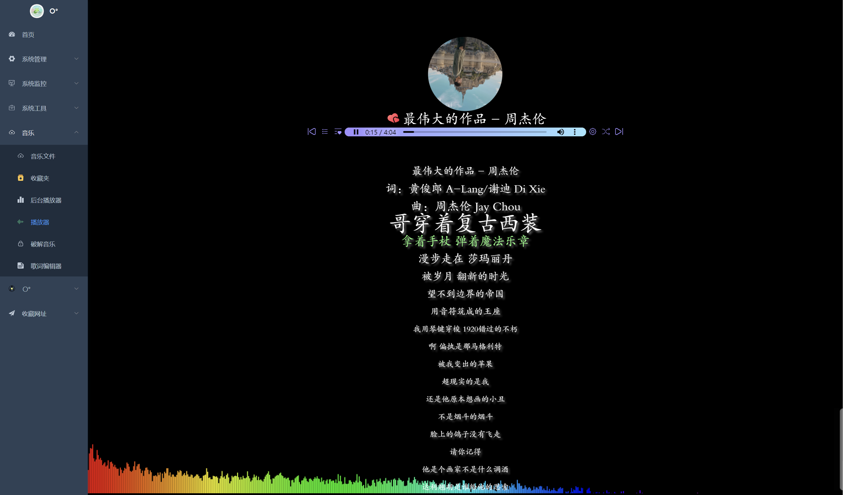 本项目最初的需求是搭建一个后台管理系统,用于管理前面博客中的音乐数据。一开始使用html设计了一个音乐播放器页面,并实现了音乐播放的基本功能,集成到了博客插件中。 后面又使用vue实现了音乐播放器页面。