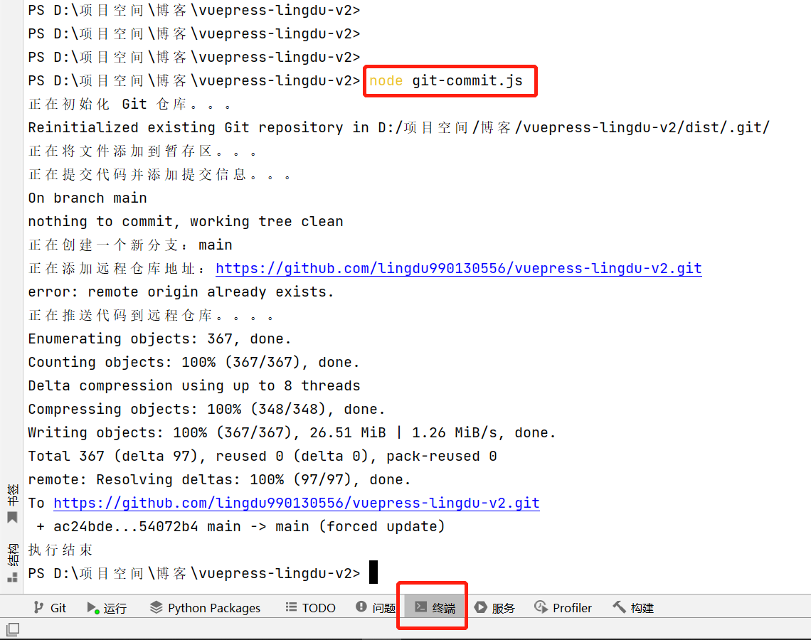 这时候可以在控制台单独执行node git-commit.js命令提交代码:
