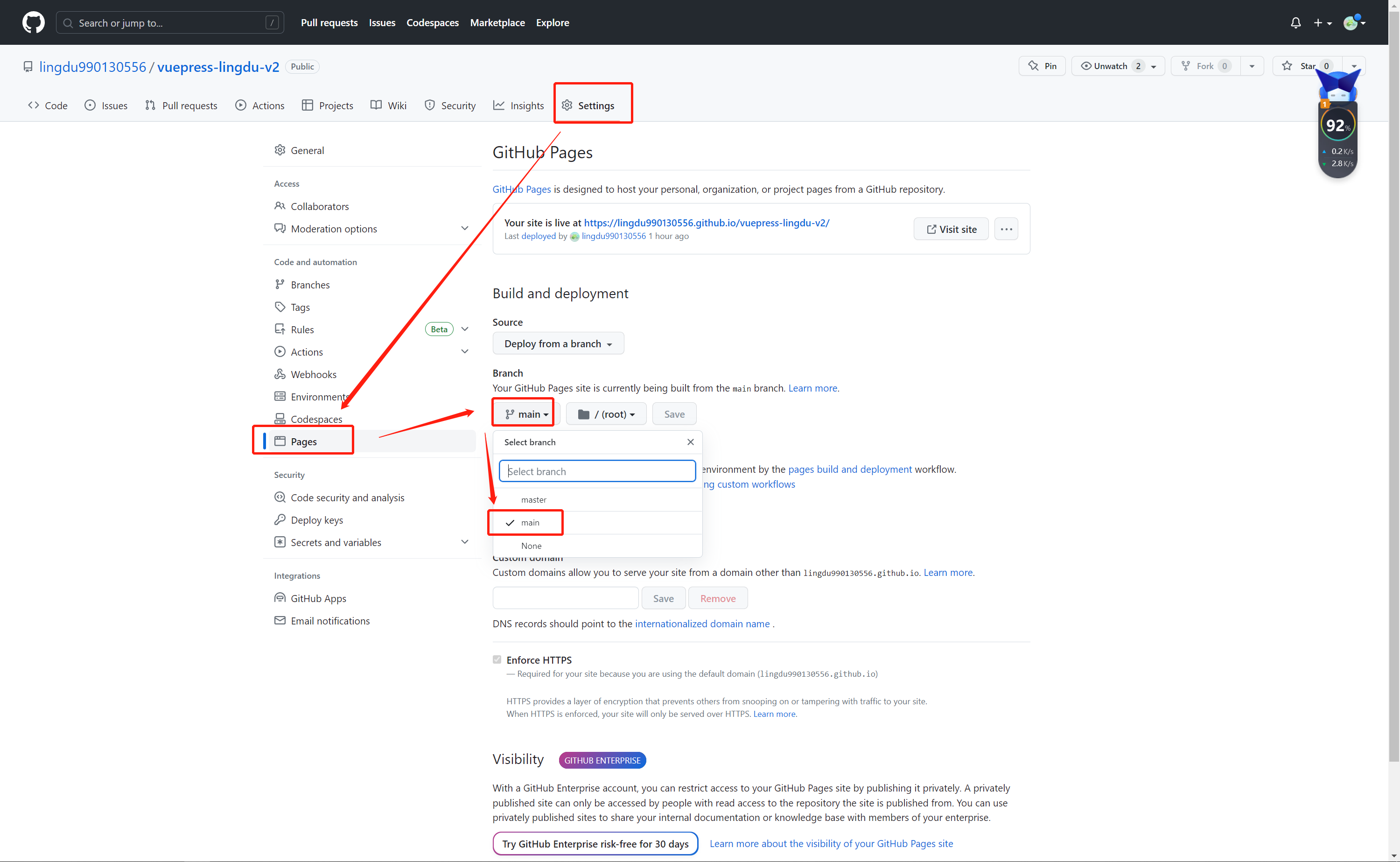 4. GitHub开启Pages