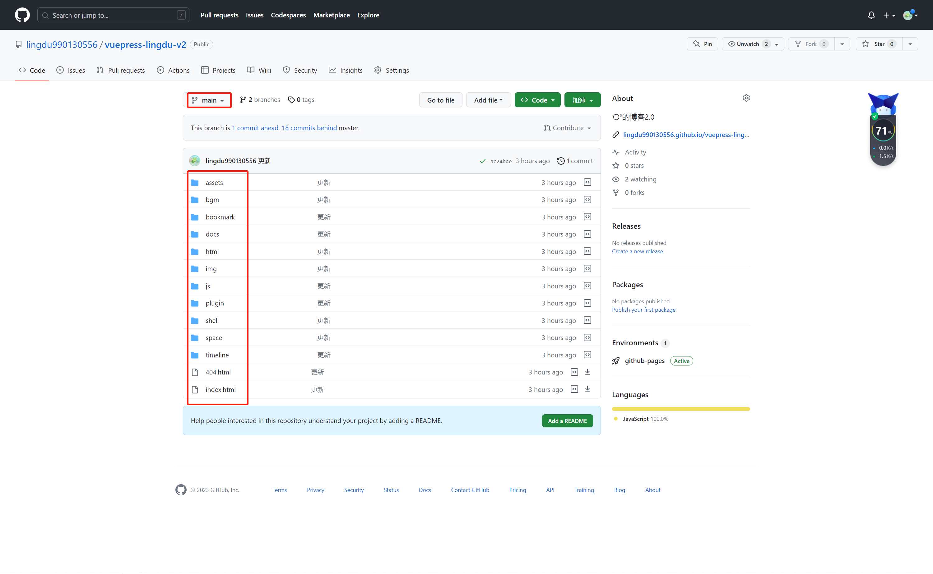 至此,你的vuepress项目就能在GitHub上访问了。且每次本地打包的时候就会自动提交到GitHub分支上