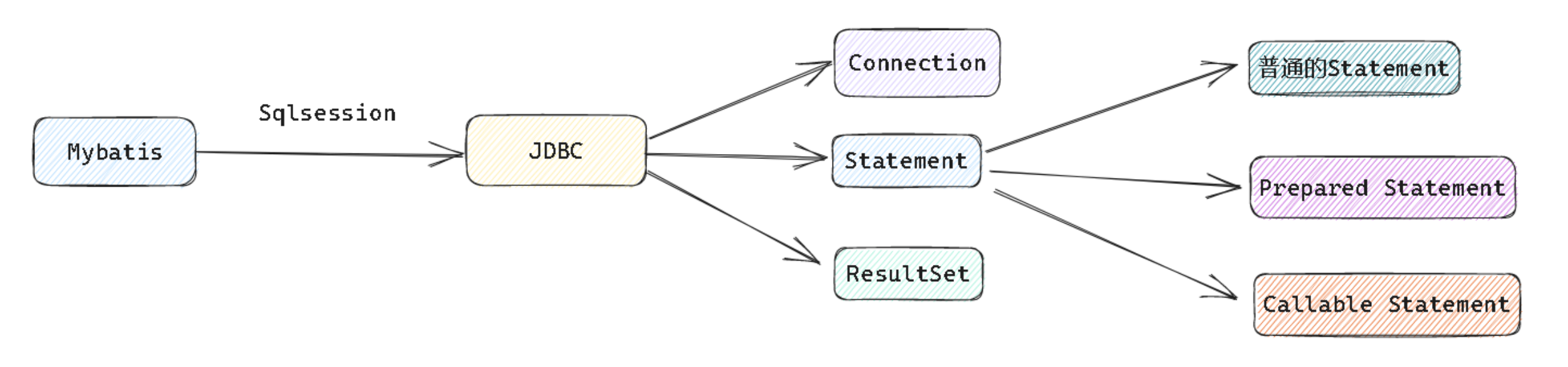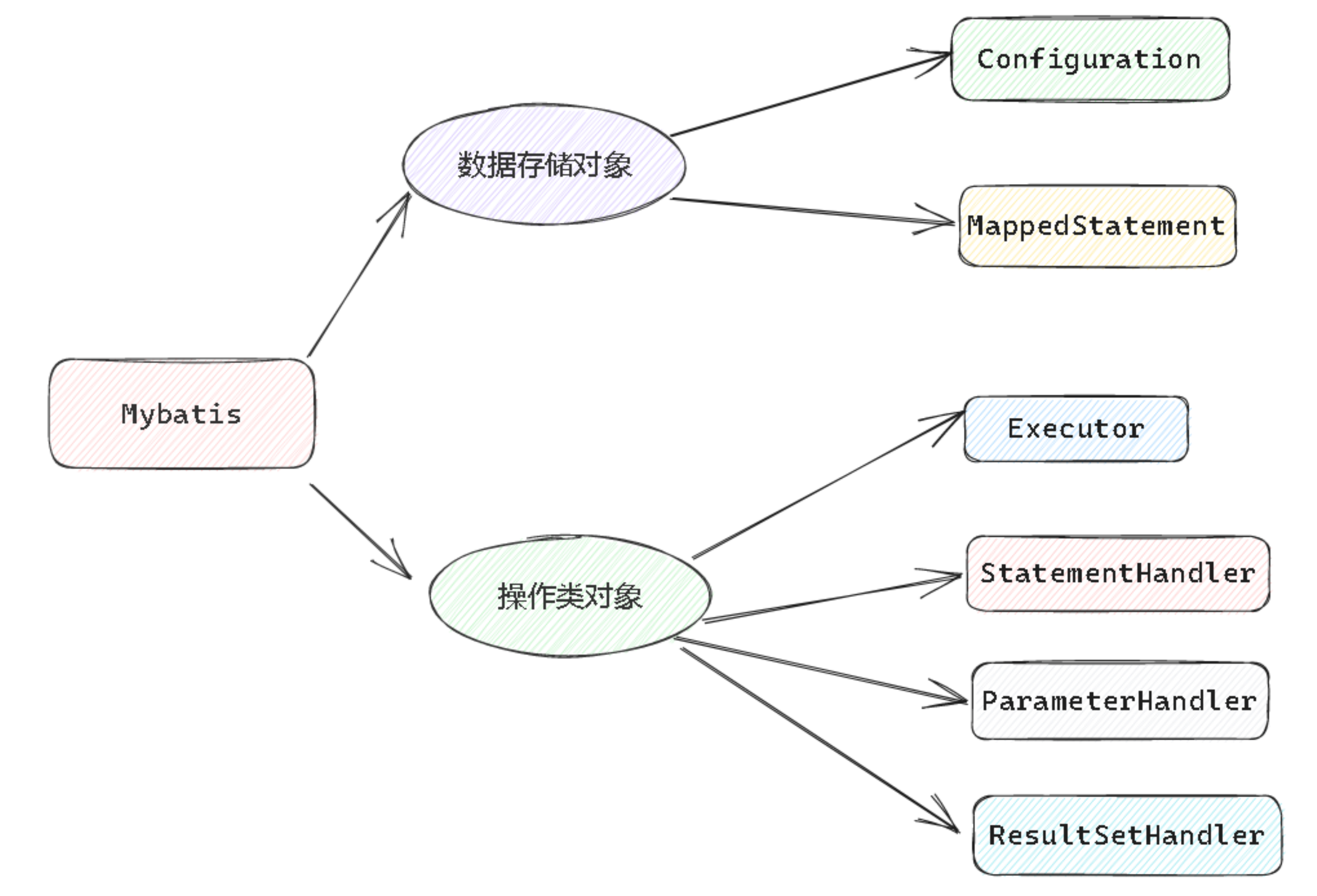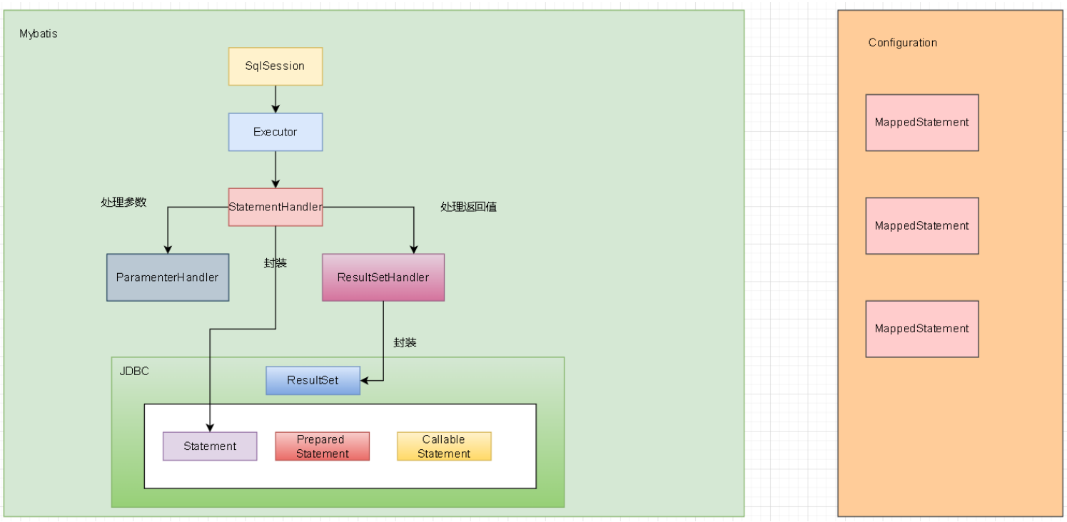 Executor才是真正完成数据库交互, 增删改查的核心, 但是和我们前面所讲的: 一切操作的底层, 对于数据库这个层面上 来讲, 都应该是JDBC, 现在Mybatis做了这项工作之后, 他怎么和JDBC建立联系呢? 那就由后面的对象配合他来完成