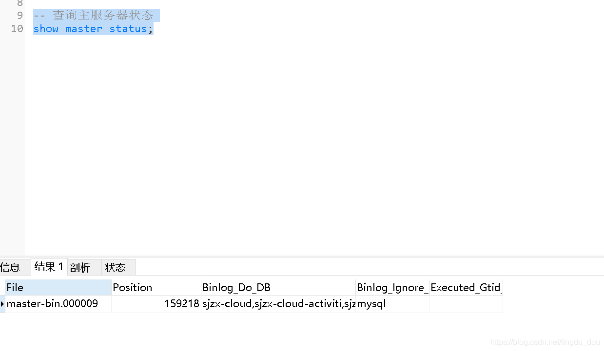 -- 查询主服务器状态