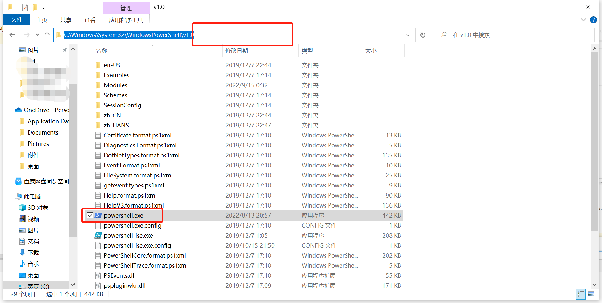 去掉最后的powershell.exe再回车到达目标文件夹,右键以管理员身份运行