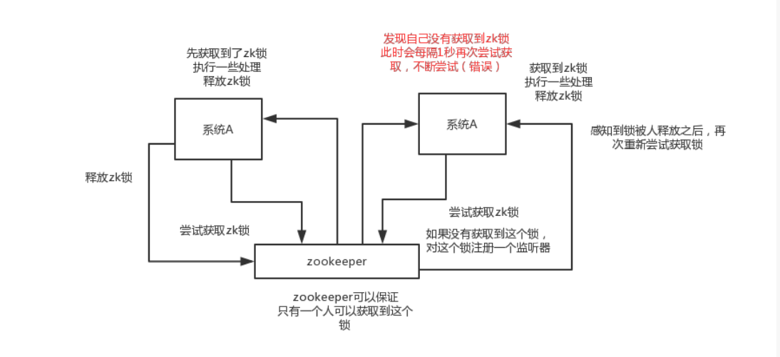 分布式锁:对某一个数据连续发出两个修改操作,两台机器同时收到了请求,但是只能一台机器先执行另外一个机器再执行。那么此时就可以使用zk分布式锁,一个机器接收到了请求之后先获取zk上的一把分布式锁,就是可以去创建一个znode,接着执行操作;然后另外一个机器也尝试去创建那个znode,结果发现自己创建不了,因为被别人创建了,那只能等着,等第一个机器执行完了自己再执行。