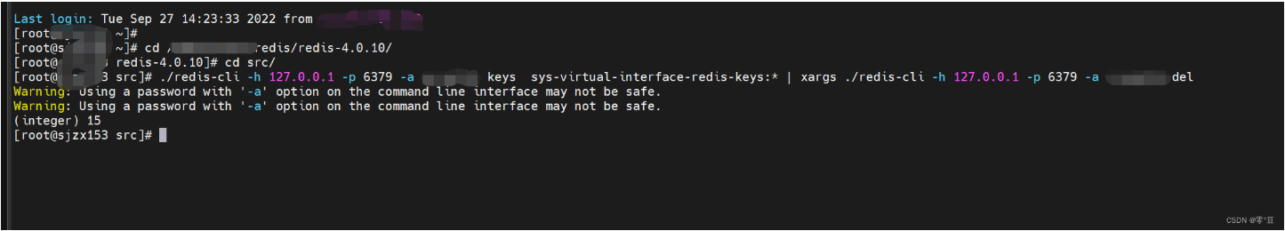 ⭕°redis-cli -h ip -p 端口 -a 密码 keys 关键字* | xargs redis-cli -h ip -p 端口 -a 密码 del