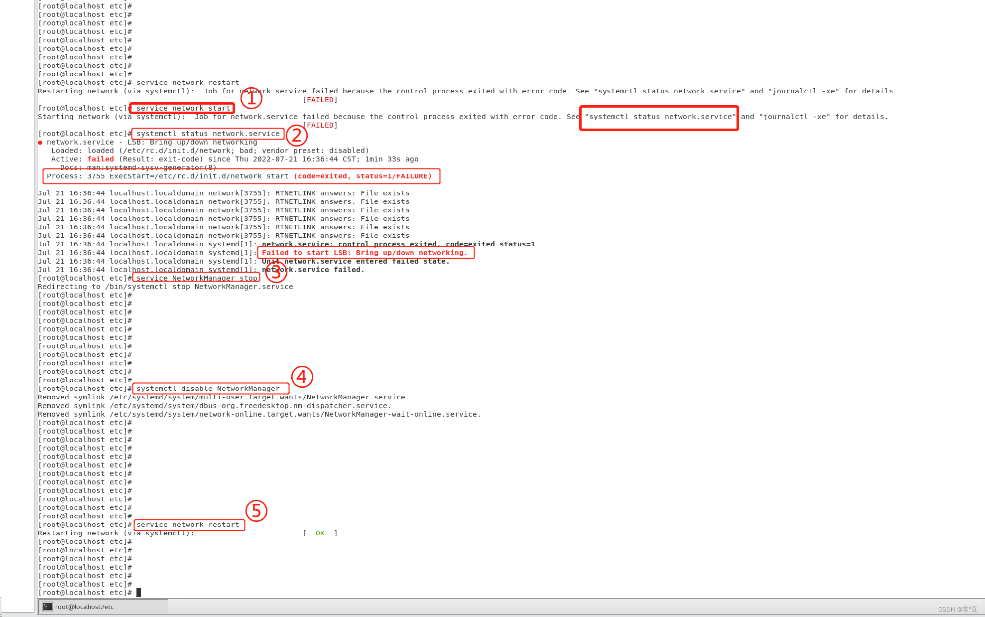 # ③出现这种报错一般是和 NetworkManager 服务冲突导致的,直接关闭 NetworkManger 服务就好了, service NetworkManager stop